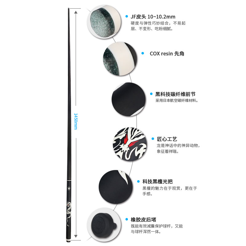 JSK-105F JF龙卷风 黑科技碳纤维小头杆中八黑八斯诺克台球杆
