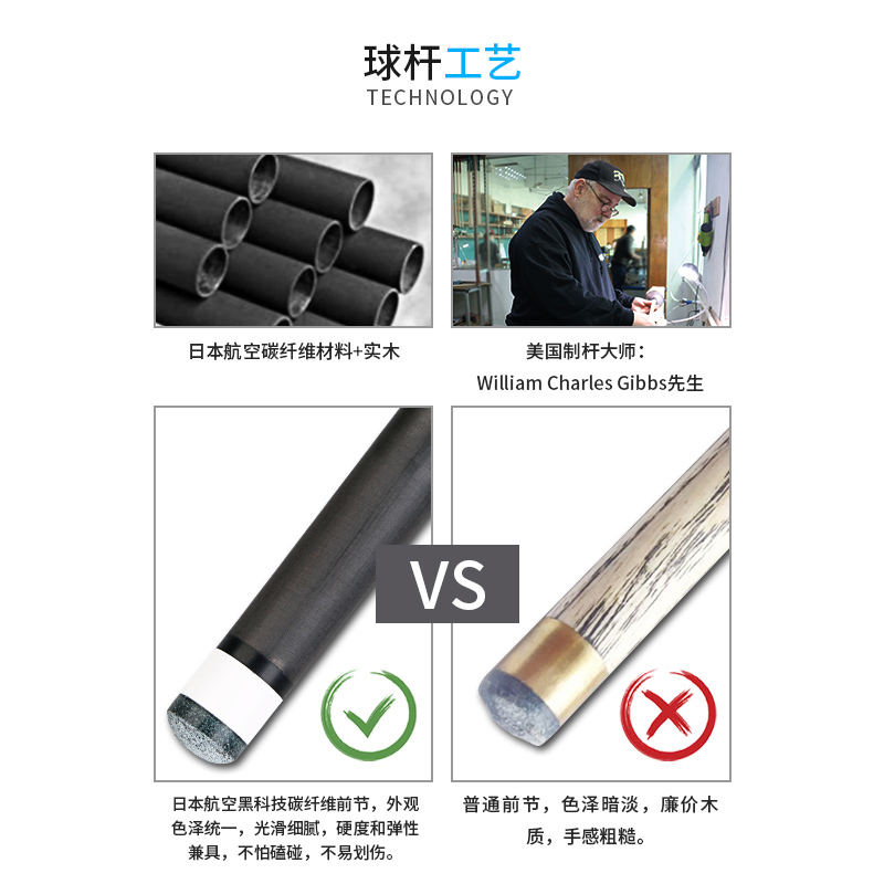 JSK-107F JF星空系列-印象 黑科技碳纤维小头杆中八黑八斯诺克台球杆