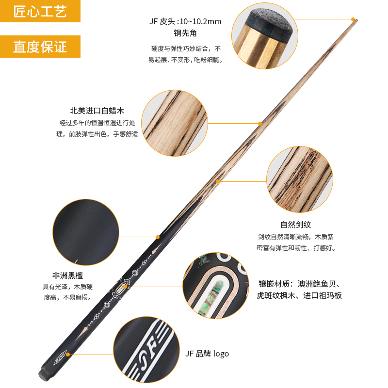 JSK-1602 JF黑毒刺系列-如意 小头中式黑八桌球杆斯诺克通杆黑8球杆