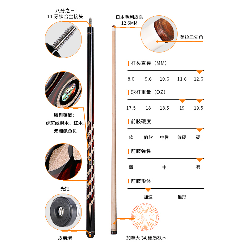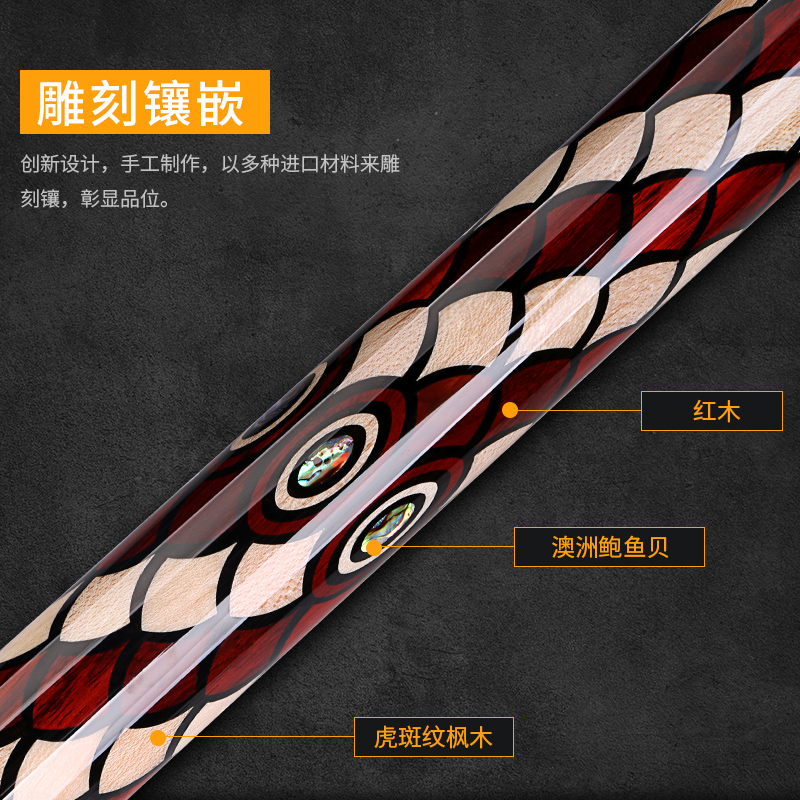 JF90-10R JF黑毒刺系列-龙鳞 美式九球杆中式黑八球杆大头杆 实木前节
