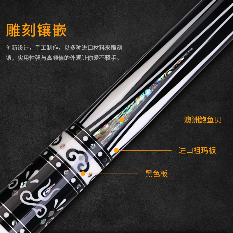 JF90-09 JF风云系列-豆蔻 美式九球杆中式黑八球杆实木大头杆雕刻镶嵌