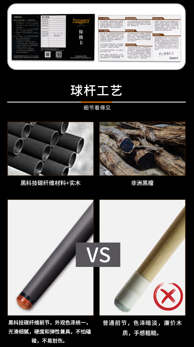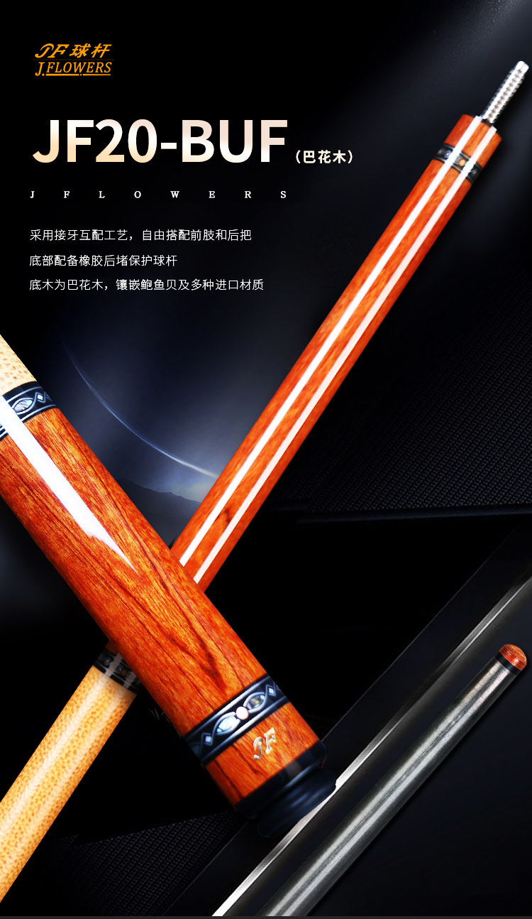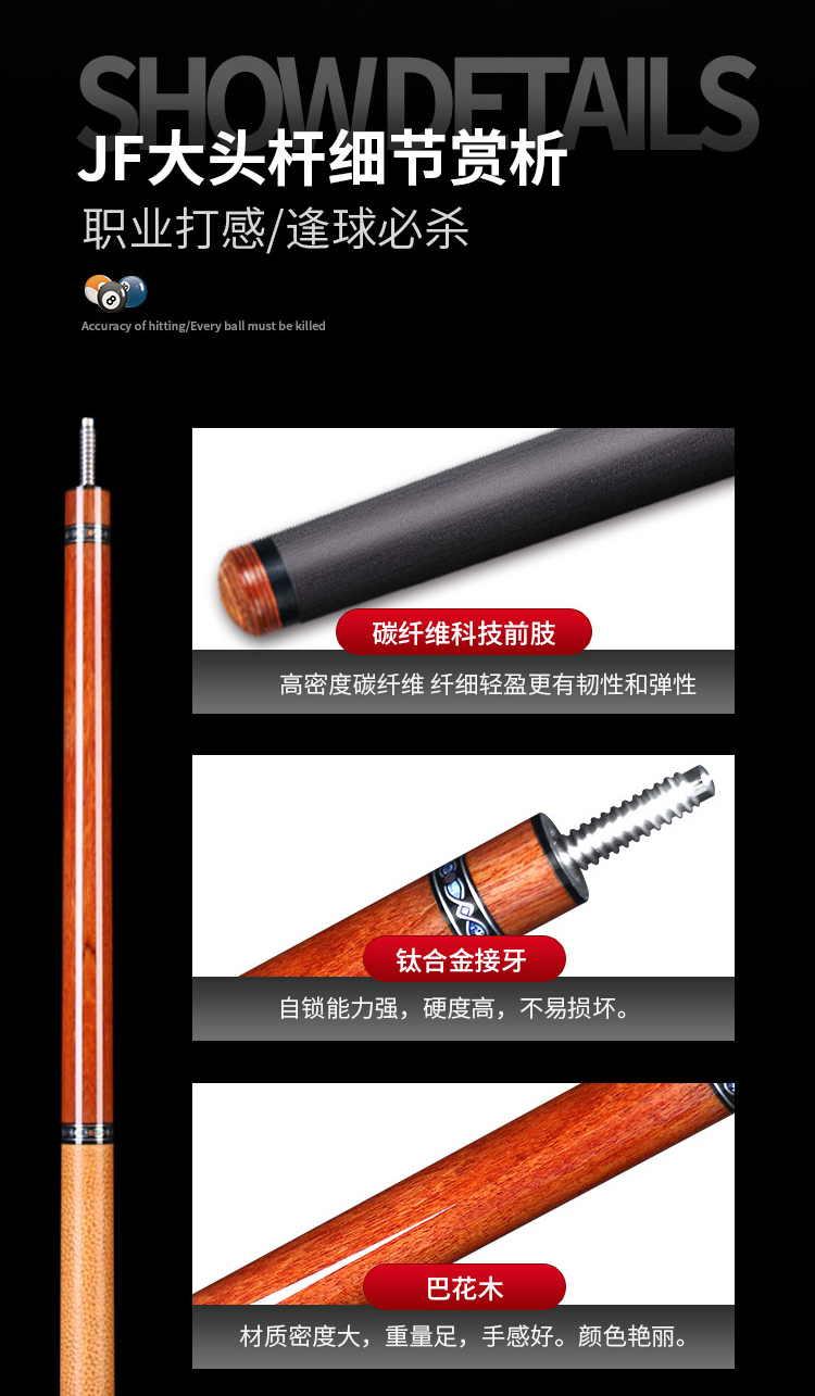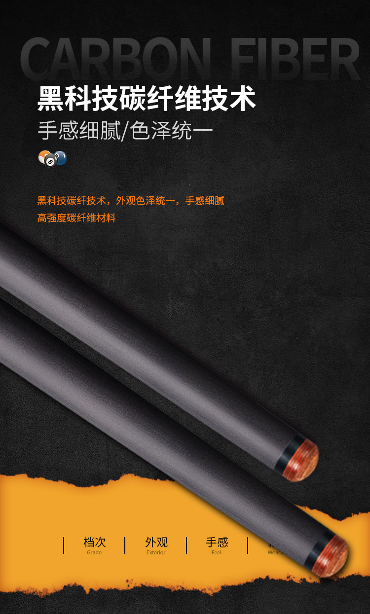 Jflowers台球杆黑科技碳纤高级素面杆 八球九球大头杆JF20-BUF