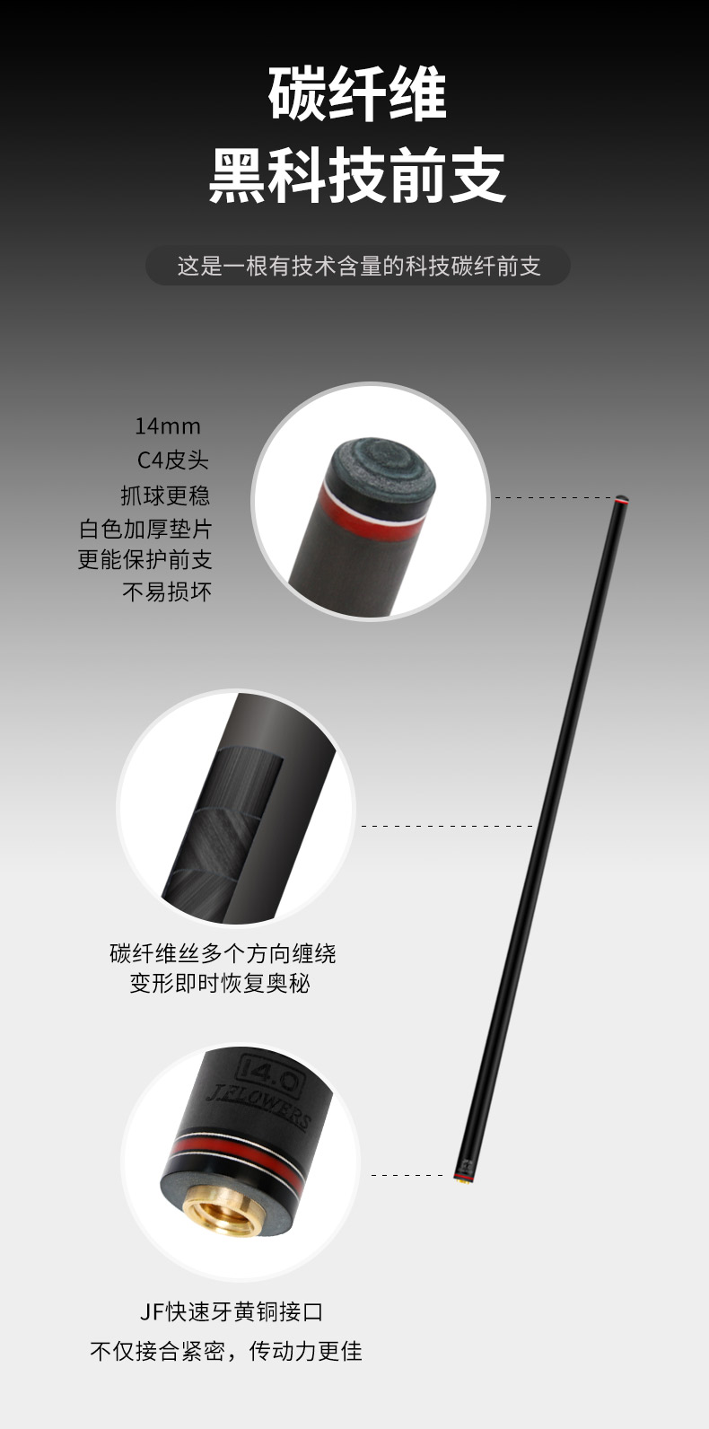 JF-SC 黑科技碳纤维九球杆前节黑8球杆可配多种接牙